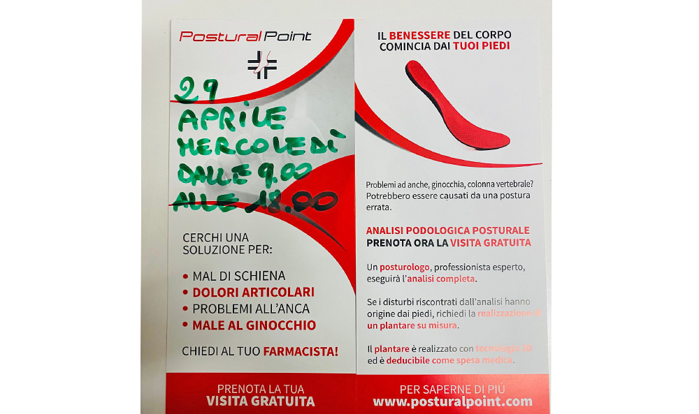 Mercoledì 29 Aprile 2026 dalle 09.00 alle 18.00 ANALISI PODOLOGICA POSTURALE.